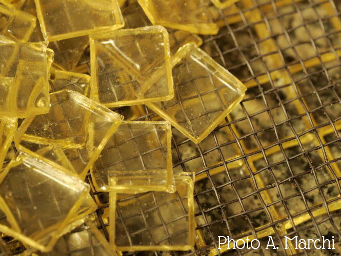 "Bonbon de sucre cuit, le jaune chaud de la bergamote évoque la luminosité du soleil d'Italie où le bergamotier, hybride du bigaradier et du citronnier, fut introduit peu avant 1700 aux environs de Bergame, d'où son nom disent certains, au grand scandale des autres spécialistes qui rapprochent ce nom du mot turc "berganuth", "poire du seigneur" qui est donné à ce fruit effectivement en forme de poire. Le son guttural du "th" turc expliquant l'orthographe "Bergamotte", acceptée par les grammairiens, et qui ne figure, à ma connaissance, que sur les boites de la maison Lefèvre-Georges"