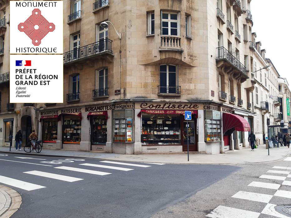 Admirez la devanture Art déco de la confiserie Lefèvre-Lemoine, ainsi que son mobilier lorrain imaginé par Georges et Georgette Lefèvre.